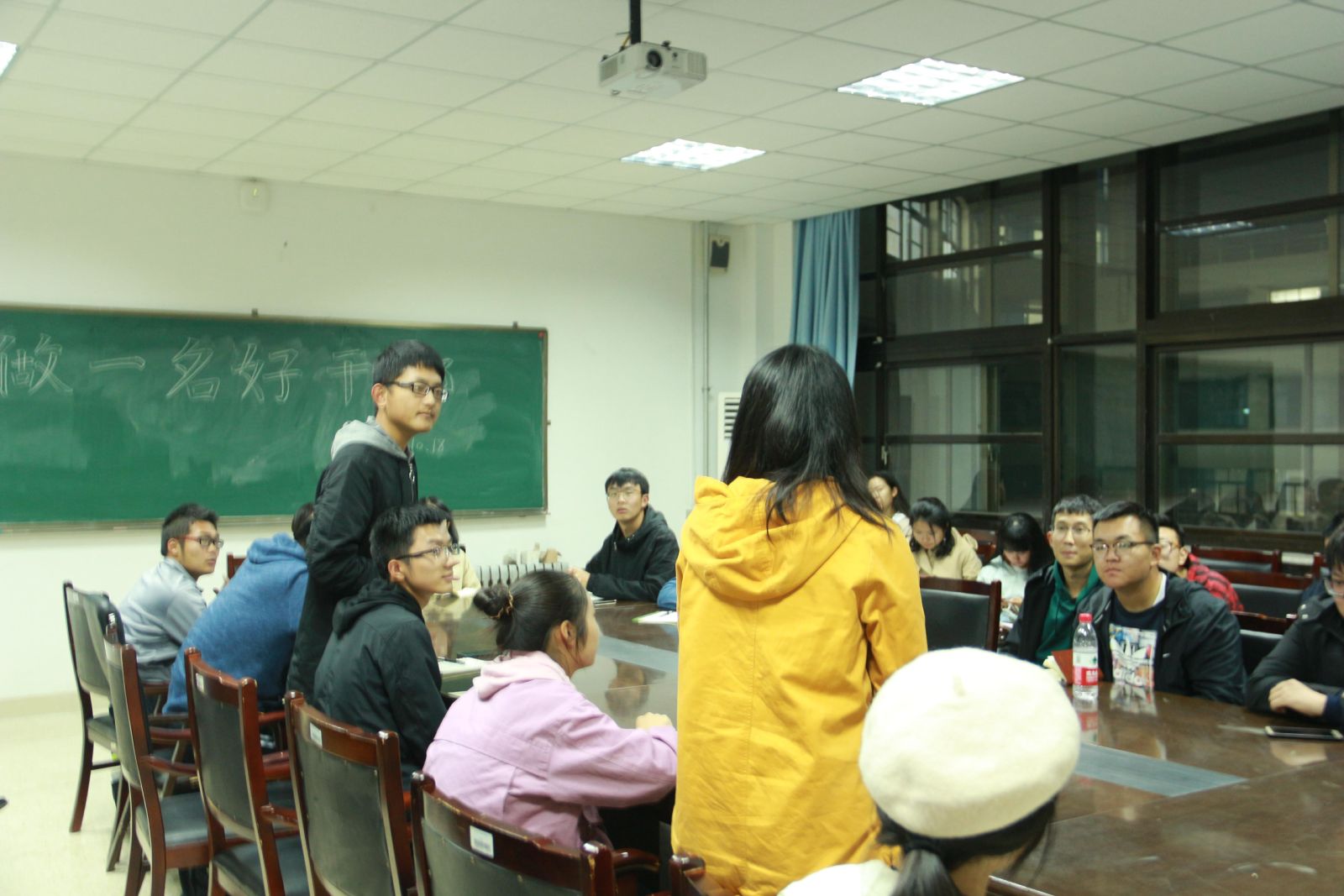 会议伊始,吕靖介绍了本次分享会的主要内容,分享如何更好地处理班委、同学间的人际关系,正确处理学习与工作的关系,实现学习与工作双赢。张弛以“自律自省,不忘初心”为题进行了事迹分享,强调了树立目标的重要性。侯佳慧和李昊昱分别从不同角度指导班委们如何更好地处理班委间、同学间的人际关系,提出礼貌尊重,懂得沉默等具体建议。李想就自身经历及建议,对如何正确处理学习与班委工作的关系分享了自己的见解,提出“今日事,今日毕”“登高山须攻绝顶,赏大雪莫畏严寒”的观点,强调要不畏艰难险阻和失败,及时完成自己的工作和学习。最后,进入答疑解惑环节,班委们踊跃发言提出疑问,由孙磊及17级学生干部对每个问题分别进行解答,分享会在掌声中圆满结束。