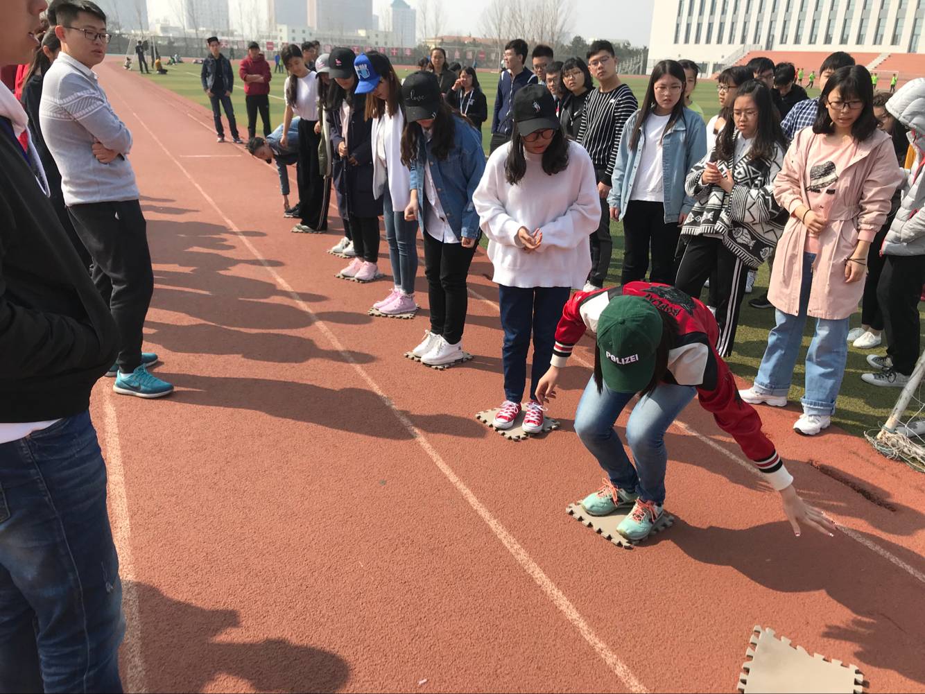第一日比赛项目包括个人赛“袋鼠跳”、“智勇双全”和团体赛“环环相扣”和 “极速穿梭”。个人项目中,每位参赛者都表现出了良好的竞技状态,展现出了当代大学生的活力与激情。“环环相扣”比赛中,2017级数学与应用数学班、信息与计算科学班和2016级数学与金融实验班的5名同学组成的联队通力配合,最终以1分46秒80的优异成绩夺魁。在紧张激烈的 “极速穿梭”比赛中,大家实力旗鼓相当,最终2016级统计一班的同学凭借默契的配合以57秒85完赛,获得头名。第二个比赛日,在率先进行的“搭桥过河”环节中,2016级统计联队最终以成绩3分11秒50夺得第一名。压轴进行的团体项目“五人六足”精彩纷呈,2017级数学与应用数学班凭借两棒完美的表现,以24秒28的优异斩获第一名。