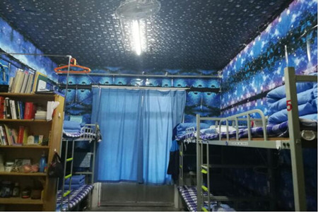 上午九点十分,全体评委在24号楼下集合完毕,首先由生活权益部副部长张成向大家交代注意事项,然后评审人员在工作人员的带领下依次进入24号楼本院女生宿舍。踏入每扇宿舍的大门,迎面而来的是风采万千、创意无限的宿舍开场秀和别出心裁的主题讲解,有独特的双簧表演、优美热情的吉他弹唱、婀娜多姿的拉丁舞表演、创意满满的新闻联播节目、可爱活泼的照片墙等等。除了丰富多彩的表演,同学们利用废弃快递盒等制作的手工作品也是让人眼前一亮,让评委们感受到每个宿舍不一样的宿舍氛围。下午三点三十分,评审团进入8号楼男生宿舍,浪漫文艺的星空墙纸、火红的国旗党旗、深情的合唱表演让评委们赞叹不已。活动期间,评委们认真打分并给出指导意见,新生们认真倾听,双方亲切交谈,收获满满。最后活动在一片欢笑声中结束。