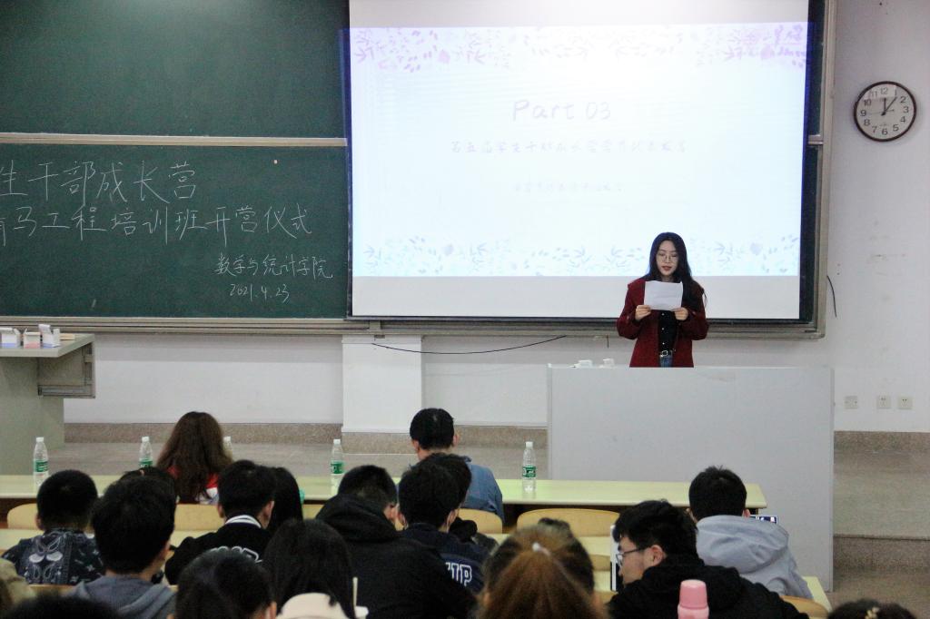 本站讯 2021年4月23日下午4时,taptap点点体育于商学院553教室举行学生干部成长营暨青马工程培训班开营仪式。taptap点点体育党委副书记王鹏飞,辅导员孙磊、魏佳佳出席了活动,学团中心部长团,2019、2020级全体班级委员参加了开营仪式。本次活动由曹祎芯主持。
