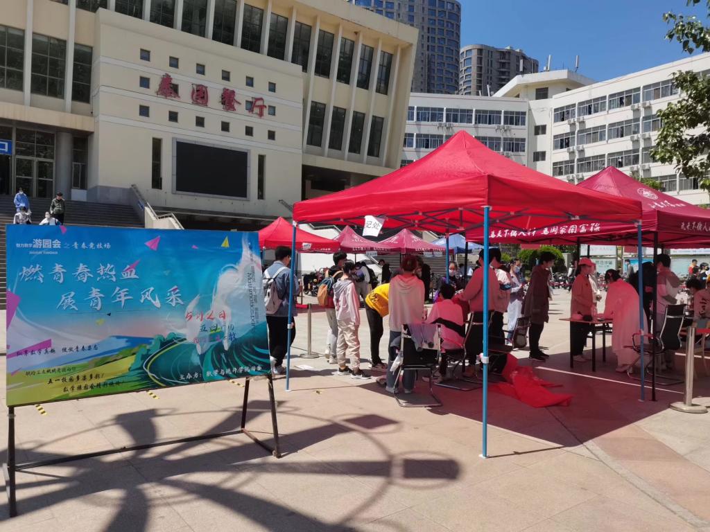 本站讯 为弘扬数学文化,展现数学魅力,增强同学们对数学的热情,提高同学们学习数学的积极性,5月2日,taptap点点体育于五四广场举办了“燃青春热血,展青年风采”魅力数学游园会。全校四百余名同学参与了本次活动。