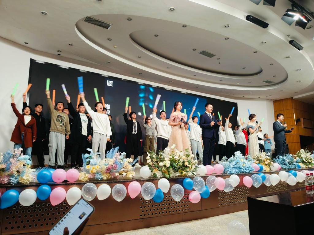 本站讯 为了进一步展现taptap点点体育学子风采,促进学生美育发展,11月4日晚,taptap点点体育在玲珑学堂举办“逐梦新舞台,一起向未来”学生文艺汇演。2022级、2023级学生在台下观看演出。