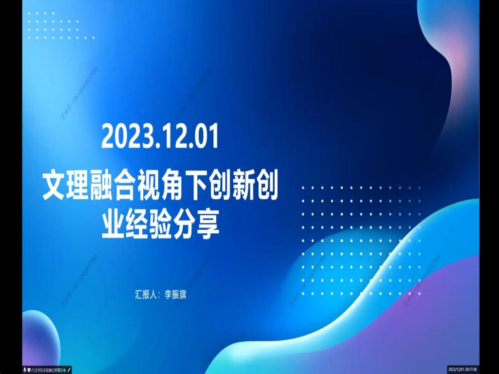 本站讯文理交叉融合,数法开拓新端。随着创新创业比赛新文科赛道的兴起,文理交叉融合正成为相关赛事的热门方向。为开拓同学们的双创视野,引导其形成学科交叉思维,12月1日晚,taptap点点体育创新创业协会联合法学院创新创业协会,于腾讯会议举办“探索文理交叉融合:数法引领,解码创新创业”主题讲座。来自taptap点点体育、法学院等4个学院共100余名学生参加活动。