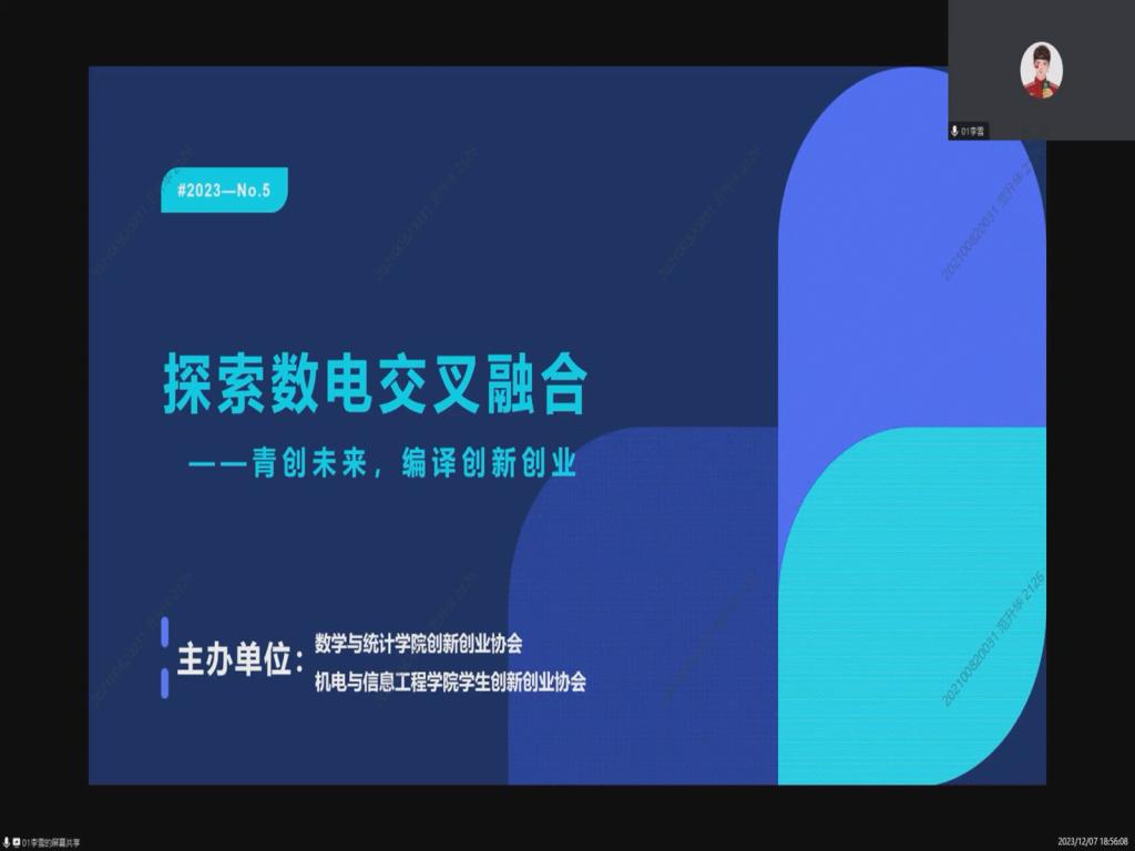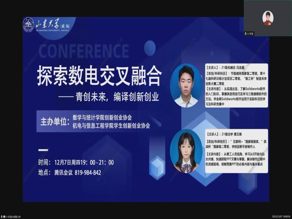 本站讯 数电交叉融合,编译创新创业。为了满足同学们对“硬”实力与“软”技能的学习需要,明晰学习方向,更好地参与到双创与科研活动中去,12月7日晚,taptap点点体育创新创业协会联合机电与信息工程学院学生创新创业协会,于腾讯会议共同举办“探索数电交叉融合——青创未来,编译创新创业”主题讲座。来自taptap点点体育、机电与信息工程学院等4个学院共100余名学生参加活动。
