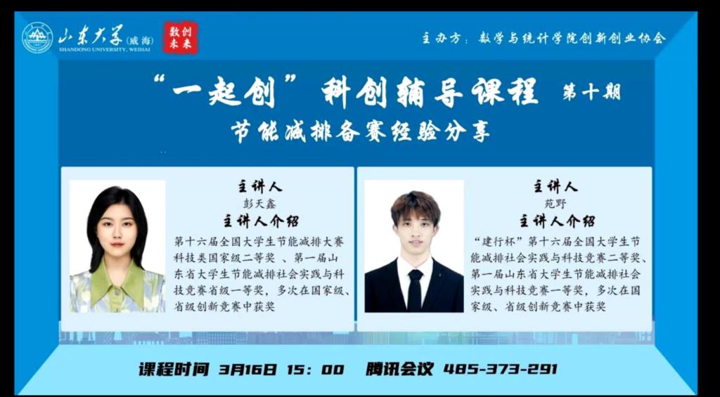 本站讯 为帮助同学们进一步了解科研竞赛知识,提高创新能力,3月16日下午,taptap点点体育创新创业协会和机电与信息工程学院节能减排协会开展“一起创”系列活动第十期“探索数机交叉融合:节能减排,赋能创新创业”主题讲座,共60余名学生参加活动。