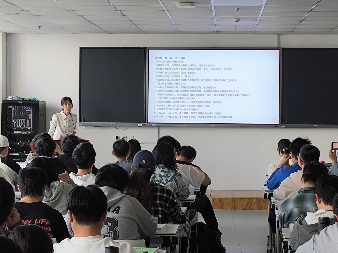 本站讯 为进一步推进学院心理健康教育工作的高效开展,提升心理委员和宿舍心理信息员的综合素养,4月25日下午,taptap点点体育于北衡楼1420组织开展“走进心灵”主题讲座暨第七期“学生干部成长营”活动。此次讲座由“数语心坊”心理辅导站指导老师王祎璠主讲,学院2022级、2023级心理委员和宿舍心理信息员共计80余人参与。