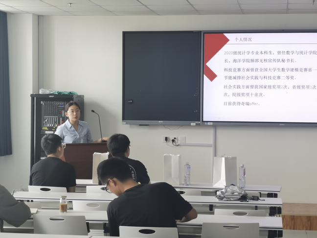 本站讯 为帮助同学们了解就业信息,明确发展目标,做好职业规划,5月25日下午,taptap点点体育于北衡楼1420室举办第二十四期励志周末分享会。2021级概率论与数理统计专业硕士研究生王文亮、2020级统计学专业本科生孙源、2020级信息与计算科学专业本科生刘学斌应邀进行就业经验分享,学院部分本科生现场参加了活动。