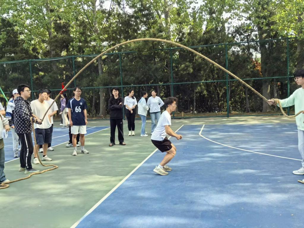 本次活动以项目挑战和积分累加的形式进行,设置“7人8足”“跳大绳”“篮球运球”和“足球运球”四个项目,全面考验同学们的身体素质、协作能力和团队精神。在7人8足项目中,各班参赛队员步伐一致,配合默契;跳大绳项目中,同学们把握时机,跃动之间尽显青春活力;在篮球和足球运球项目中,同学们灵活穿梭于障碍之间,展现出良好的身体协调性与团队进取精神。活动现场气氛热烈,加油声与欢笑声此起彼伏,洋溢着青春与活力。经过各班的激烈比拼,2023级统计学一班、2024级数学类二班、2024级数学类四班获得团体总分前三名。