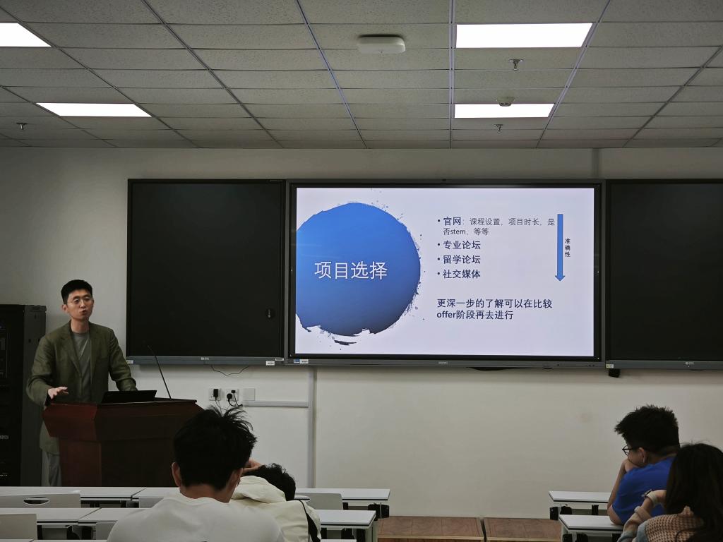 本站讯 为助力同学们提升留学申请竞争力,做好发展规划,5月16日下午,taptap点点体育于北衡楼1420室举办第三十期“励志周末”活动之数统交叉学科留学申请策略分享会。本次活动邀请了芝加哥大学布斯商学院工商管理硕士彭秋迪担任主讲嘉宾。