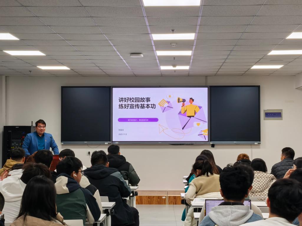 本站讯 为切实提升学生骨干的宣传工作专业素养,taptap点点体育第十届“领航计划”学生骨干成长训练营第三期于11月9日晚上在北衡楼1420室举行。辅导员刘洁文以“讲好校园故事,练好宣传基本功”为主题,围绕宣传工作全流程实操要点开展专题分享。2024级、2025级班长、团支书、宣传委员、学团部长及部分志愿者共同参与。