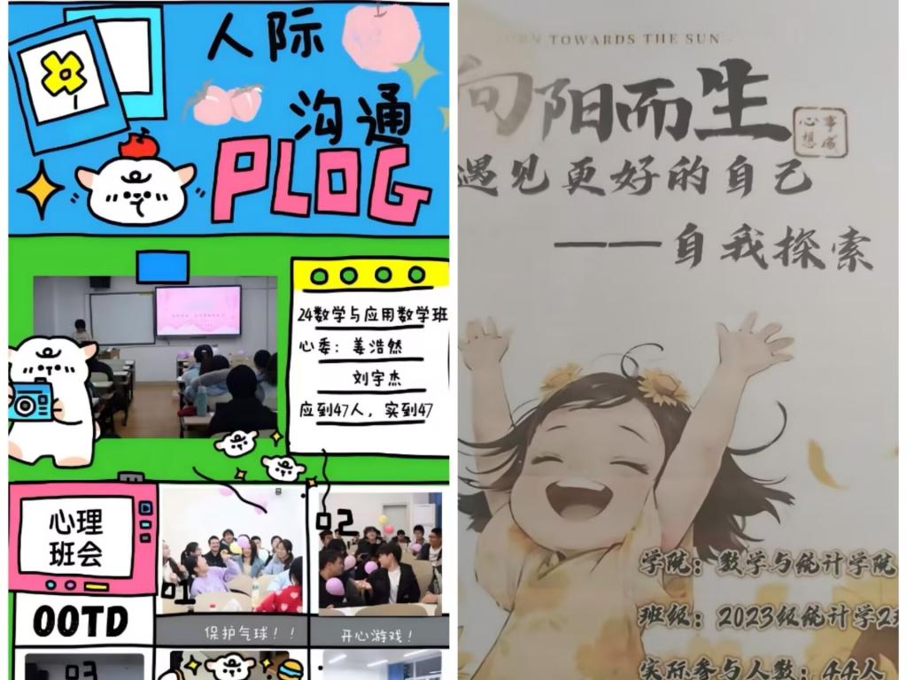 班会结束后,心理委员广泛收集同学们在活动中创作的感悟随笔、创意绘画、励志语录等素材,并整理制作成系列心理成长手册,生动记录下同学们探索内心、携手成长的温暖点滴。