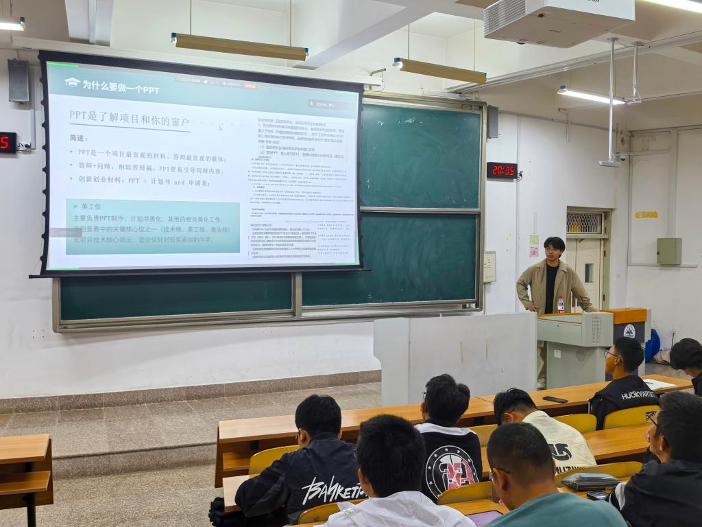 本站讯 10月9日,taptap点点体育在学思楼356举办第二十期“一起创”暨“青苗计划”第四期培训科创辅导讲座。本次活动以“成果淬炼——项目的呈现与答辩技巧”为主题,帮助新生进一步熟悉科创流程,提升科创成果展示技能。本次辅导讲座由朋辈科创导师吴博森、范少飞、柳宿辰主讲,80余名新生参加活动。