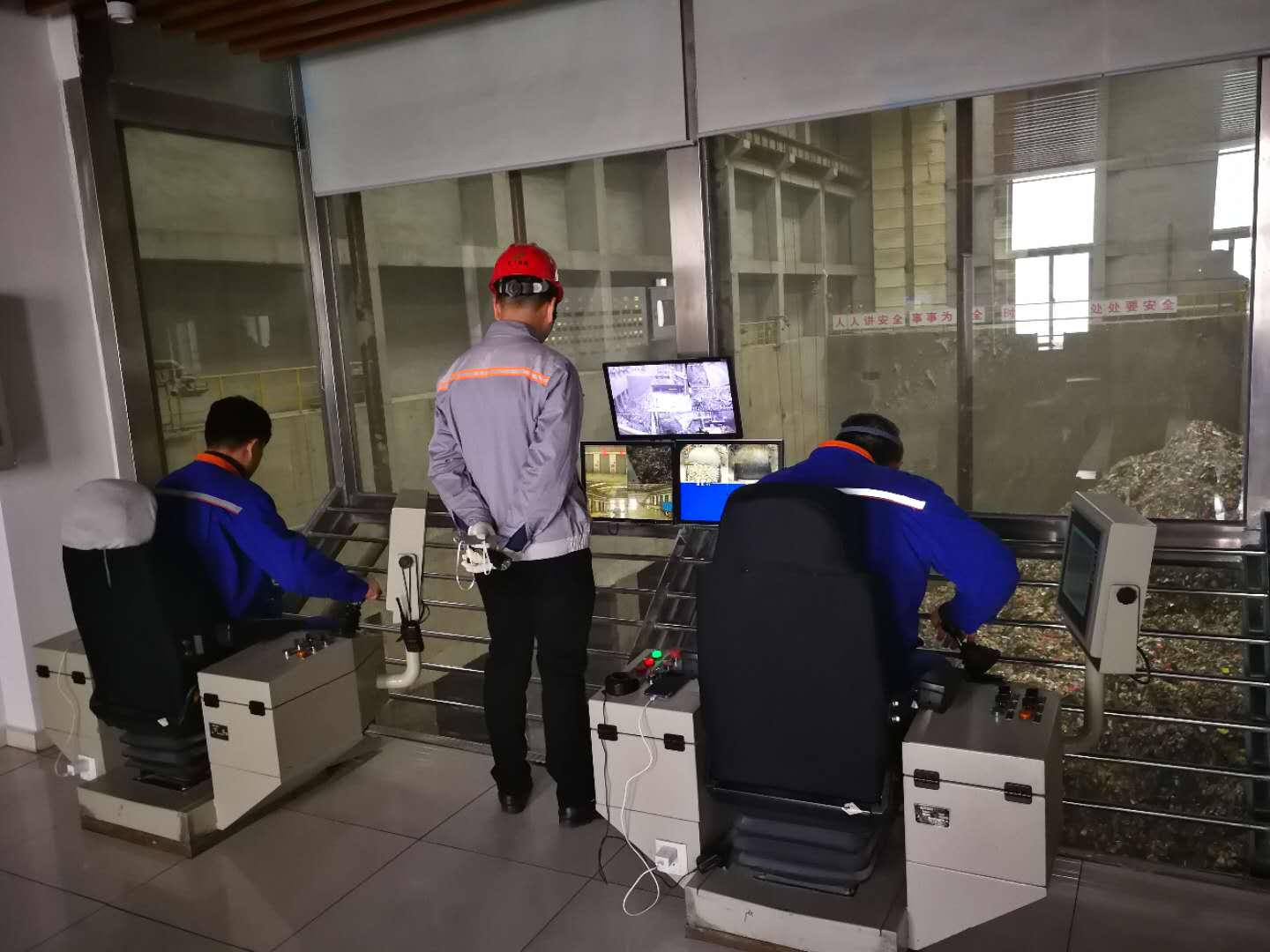 负责人王女士接待了此次前往参观的团队,团队成员首先参观了垃圾吊控制室,在这里可以看到垃圾车将垃圾运送至垃圾坑入口。由于威海市生活垃圾暂未实现分类收集,直接运送来的垃圾水分较高、热值较低,需要在工人师傅的操作下,进行合理有效的堆酵、翻料、混料等操作,提高入炉垃圾热值。同时,经相关负责人介绍,垃圾坑大致分为两个部分,入坑的垃圾按时间先后分区堆放、发酵,确保各部分发酵时间一致并发酵充分。紧接着,团队成员来到了垃圾焚烧处理厂总控室,亲眼见到了各大屏幕上显示的垃圾处理过程,包括垃圾车入厂情况、垃圾坑内情况、焚烧炉内情况等。总控室的师傅通过电脑进行着一系列操作,保证垃圾处理的各个步骤准确无误。此外,团队成员与王女士的交谈也十分融洽,团队成员了解到,自焚烧厂建立起来垃圾减量达80%以上,能彻底消除生活垃圾的二次污染,且焚烧的余热用于发电,进而真正实现垃圾处理的无害化、减量化和资源化。