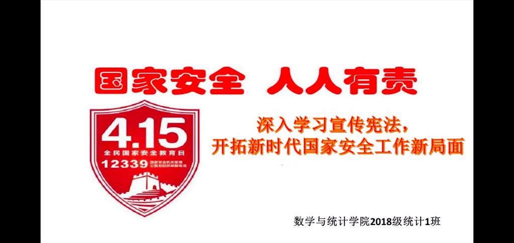 本站讯 2020年4月16日下午四点半,山东大学(威海)taptap点点体育2018级统计一班于线上开展国家安全教育日主题团日活动。4月15日为第五个“全民国家安全教育日”,本次主题团日活动主要目的为增强同学们的国家安全意识和法制观念,从而夯实国家安全的社会基础。本次活动由团支书秦千主持,统计一班58名同学参加。