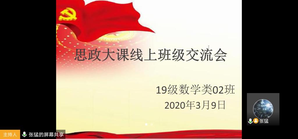本站讯 2020年3月9日下午,“全国大学生疫情防控思政大课”结束后,taptap点点体育2019级数学02班通过腾讯会议线上直播,开展了寒假“疫情防控思政大课感悟与总结”主题班会。班长张猛主持此次班会,taptap点点体育2019级辅导员王祎璠、2班全体同学参加。