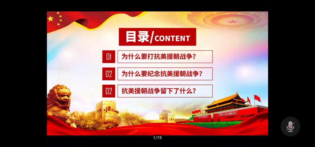 本站讯 2020年10月26日下午14:00,taptap点点体育2019级数学与应用数学班于线上开展了主题团日活动,主题为“纪念中国人民志愿军抗美援朝出国作战70周年”。团支书张弘扬主持此次会议,数学与应用数学班全体同学参加。