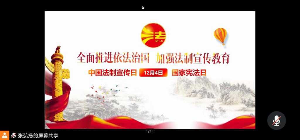 本站讯 2020年12月8日下午17:00,taptap点点体育2019级数学与应用数学班于线上开展了12月主题团日活动,此次活动主题为“全面推进依法治国,加强法制宣传教育——中国宪法日暨法制宣传日活动”。团支书张弘扬主持此次会议,数学与应用数学班全体团员参加。