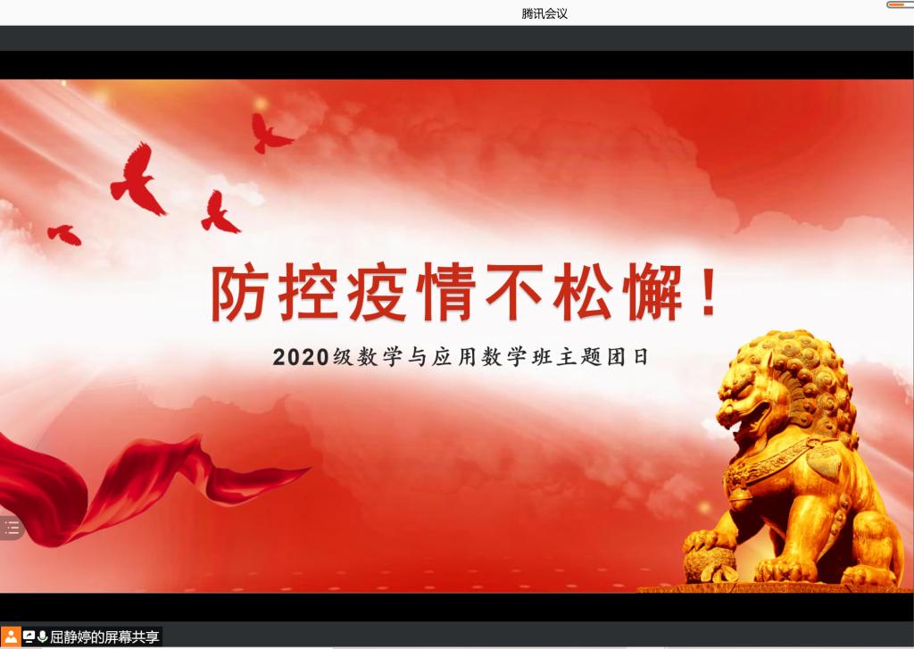 本站讯 为响应国家疫情防控政策,顺应当下疫情局势。10月4日上午,taptap点点体育2020级数学班开展了“防控疫情不松懈”主题团日活动。本次活动由2020级数学班团支书屈静婷主持,2020级数学班全体团员参与。