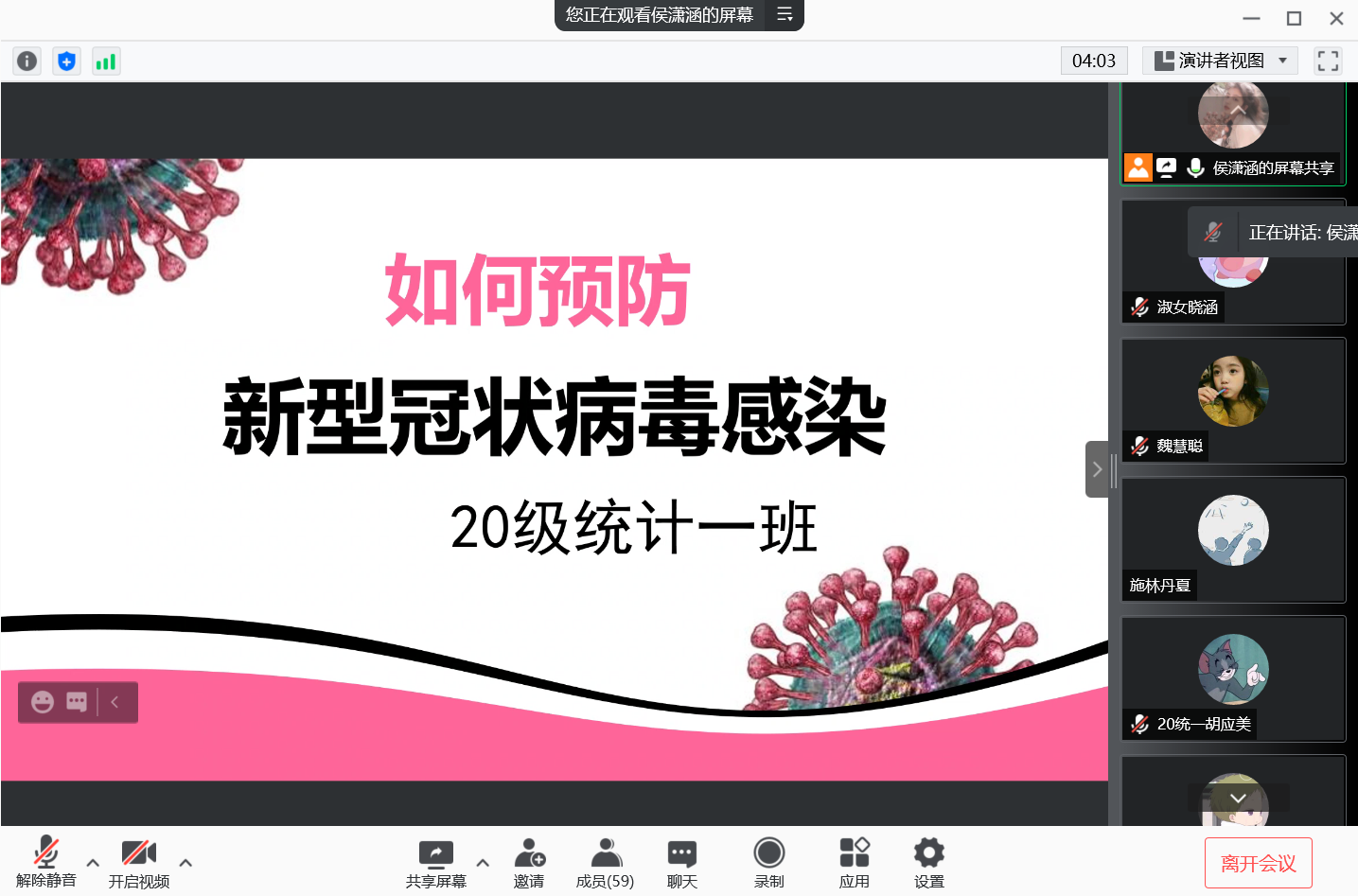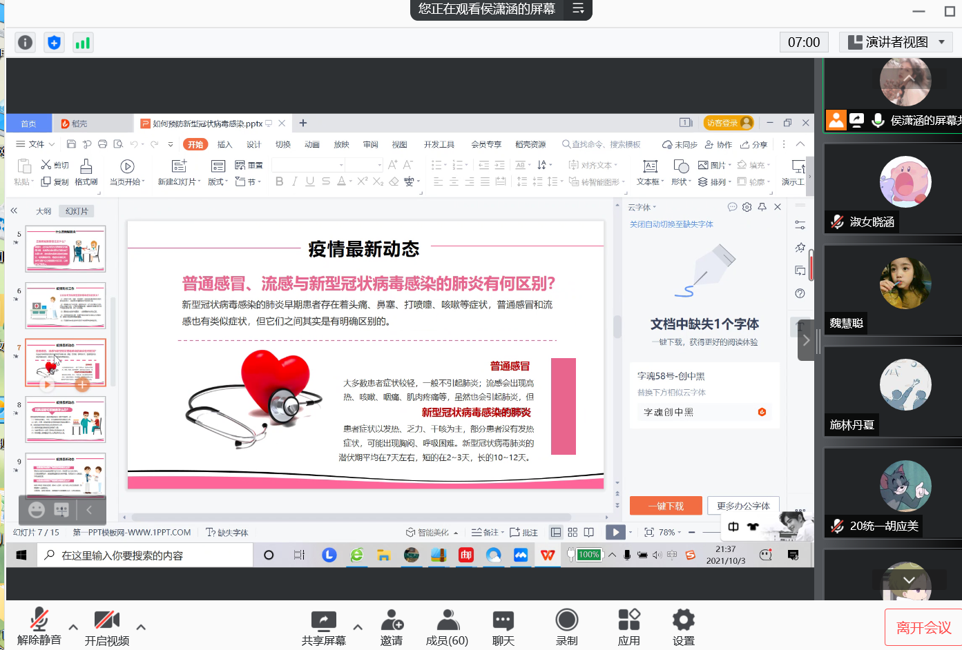 本站讯 10月2日晚,taptap点点体育2020级统计一班举行线上“提高防疫意识,做好自我防护”主题团日活动,着重强调当前疫情防控的重要性以及正确防控措施。本次主题团日由团支书侯潇涵主持,全体团员参加。