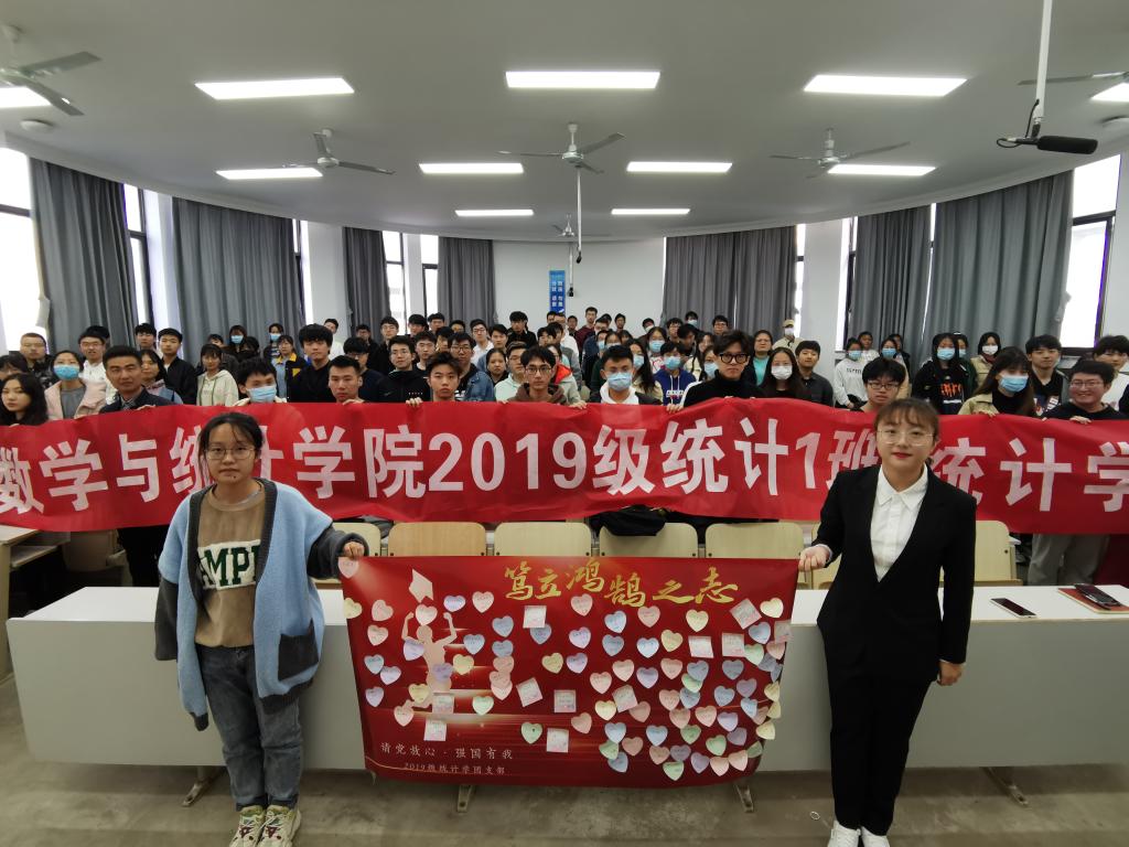 本站讯 为鼓励团支部成员争做时代青年,勇于奉献青春,10月28日下午14:00,taptap点点体育2019级统计学一班团支部、统计学二班团支部于图东319教室联合开展“请党放心,强国有我”主题团日活动。本次活动由团支书张雅齐、乔靖轶主持,19级统计学全体同学参加,党委书记于振涛、辅导员王祎璠受邀参加。