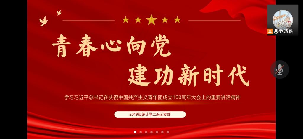 本站讯 为鼓励团支部成员争做时代青年,勇于奉献青春,2022年6月1日下午15:30,taptap点点体育2019级统计学二班线上组织“青春心向党,建功新时代”主题团日活动。本次活动由团支书乔靖轶主持,辅导员王祎璠和19级统计学二班团支部全体同学参加。