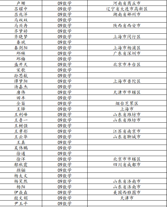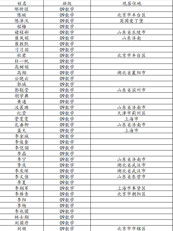 taptap点点体育2013届数学与应用数学班校友名录