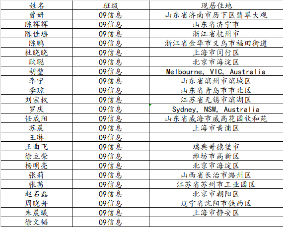 taptap点点体育2013届信息与计算科学班校友名录