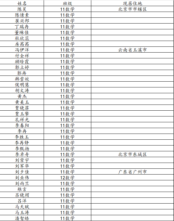 taptap点点体育2015届数学与应用数学班校友名录