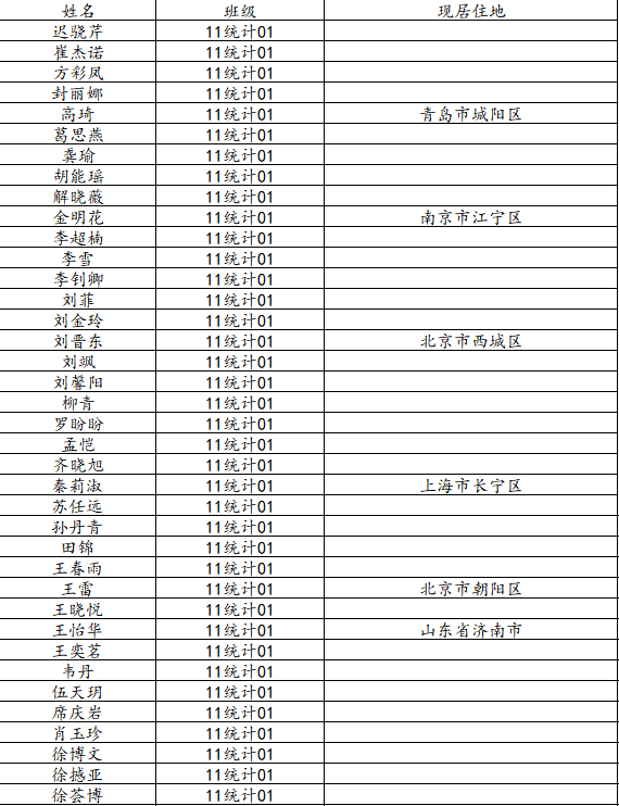 taptap点点体育2015届统计学一班校友名录