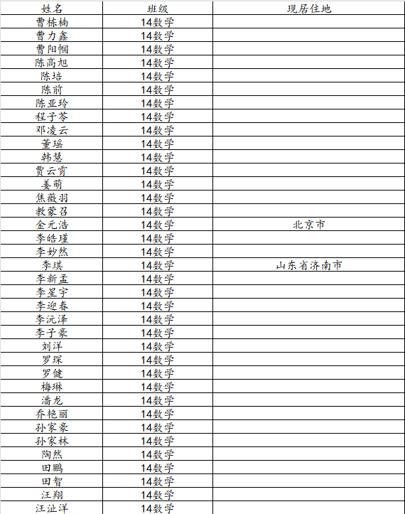 taptap点点体育2018届数学与应用数学班校友名录