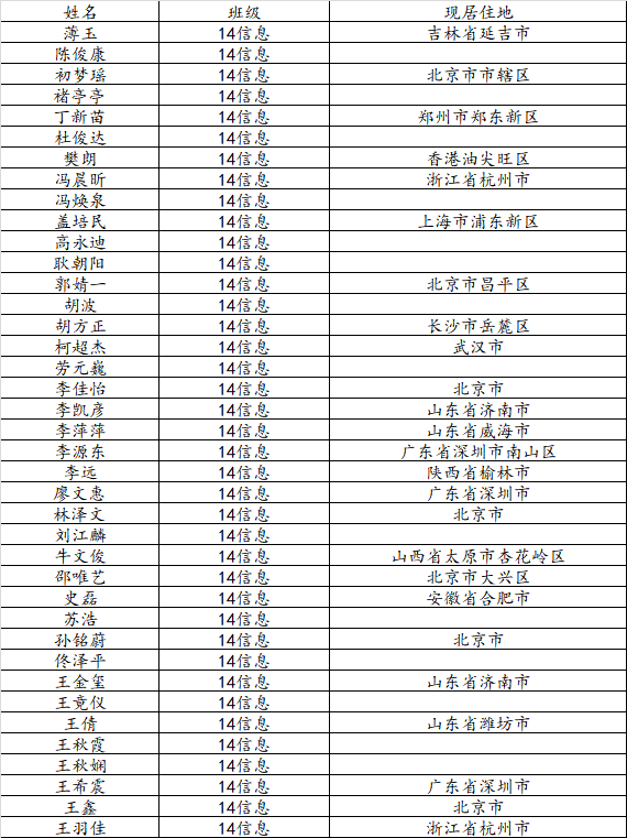 taptap点点体育2018届信息与计算科学班校友名录