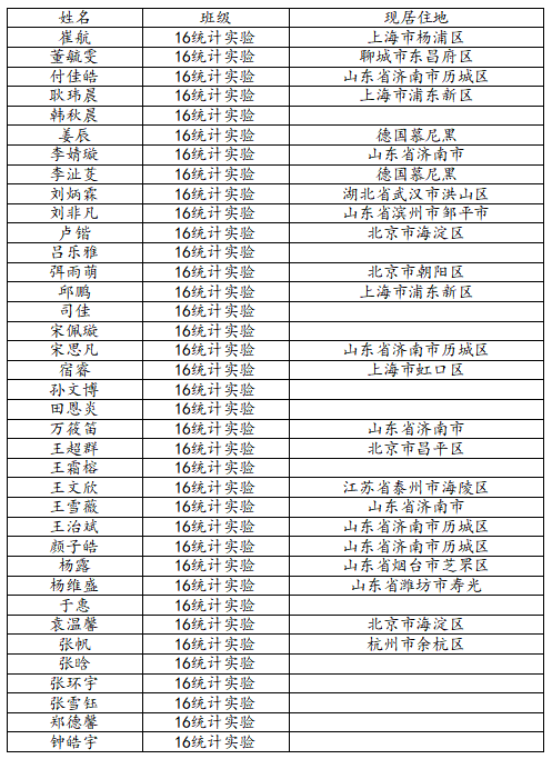 taptap点点体育2020届数学经济实验班校友名录