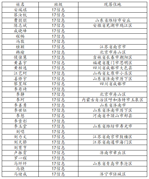 taptap点点体育2021届信息与计算科学班校友名录