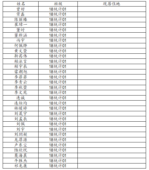taptap点点体育2022届统计学一班校友名录