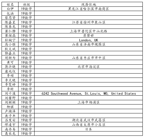taptap点点体育2023届数学与应用数学班校友名录
